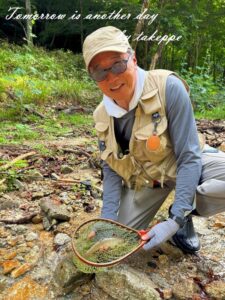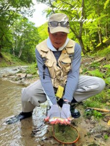 15時を過ぎたころに、先生役の方が、この辺りはヤマメがいる流域ですよ、と教えてくれたので早速入渓。